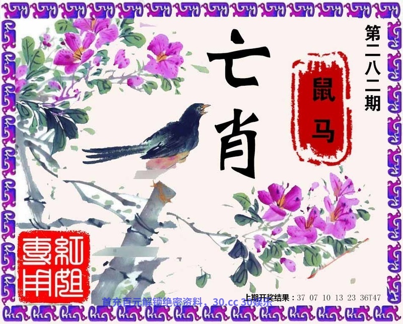 281期:七肖 | 鸡鼠牛马羊狗兔 | 开:羊47 |